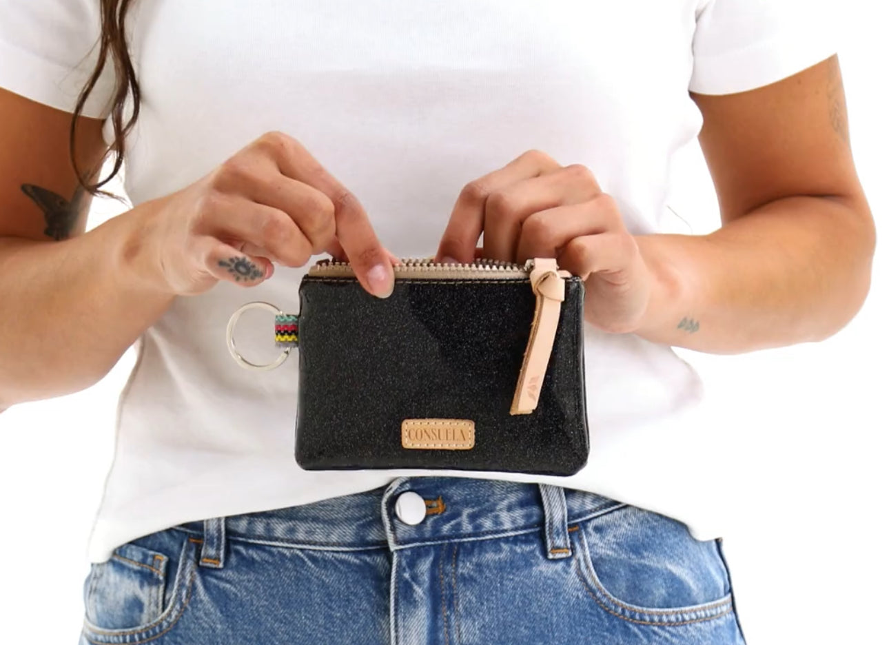 The Pouch is an easy, all-in-one bag to keep your cards and cash organized and on hand. An attached metal keyring takes this colorful pouch wallet from your bag to keys with ease.
