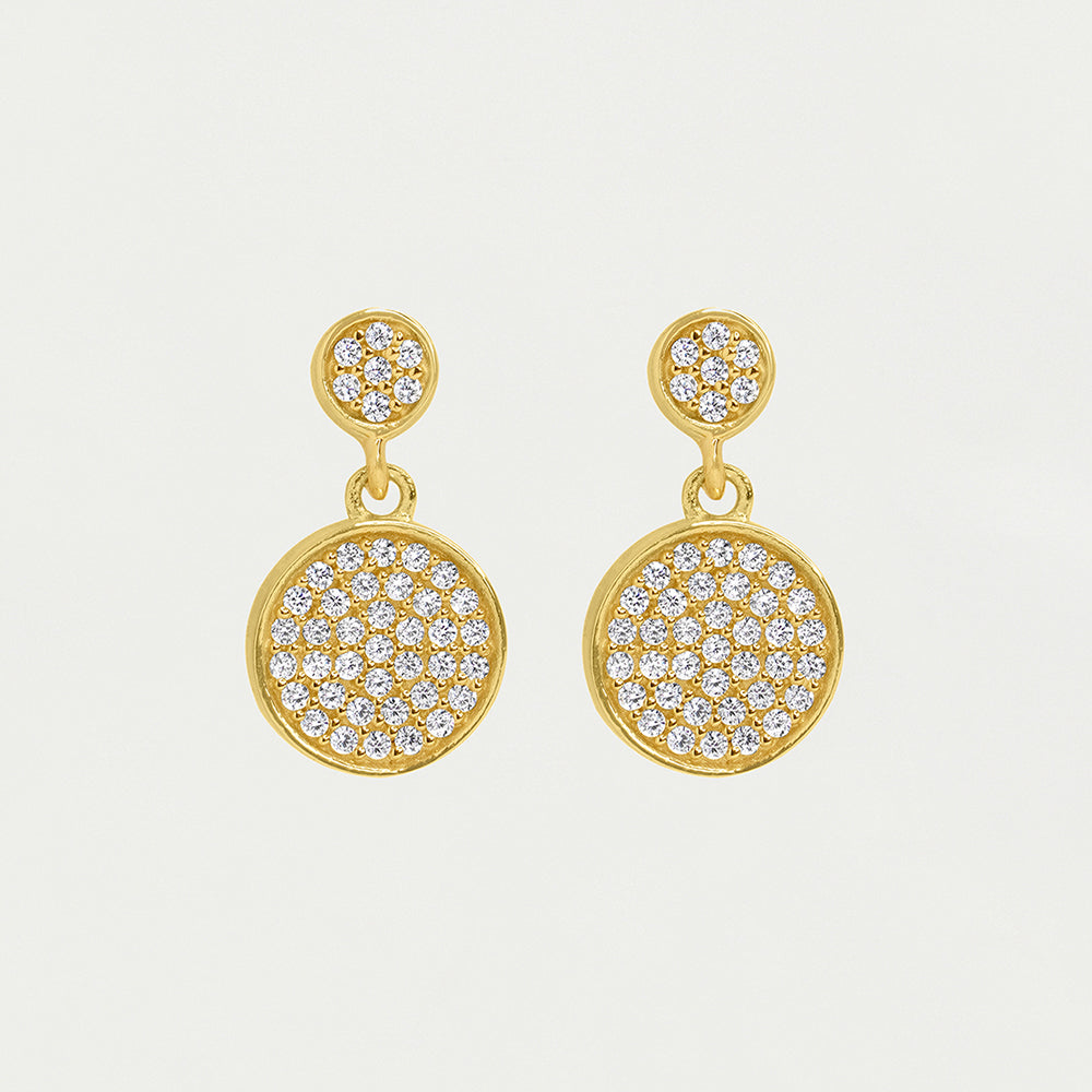 The Petit Pavé Droplet Earrings feature two mesmerizing discs filled with expertly-cut Cubic Zirconia and finished with high polish edges.