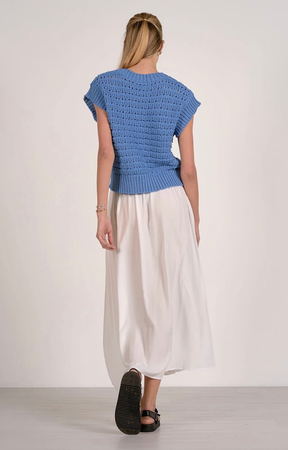 Elan S/S Open Knit Sweater-Blue