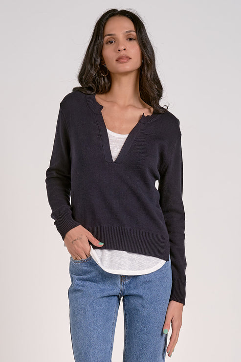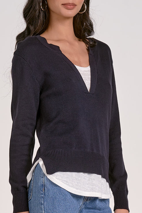 Elevate your wardrobe with our Layered Look Top. This effortless twofer style top is designed to make getting ready a breeze, while also adding a touch of elegance to any outfit. With its layered look, it's both stylish and convenient. Perfect for the modern woman on-the-go.