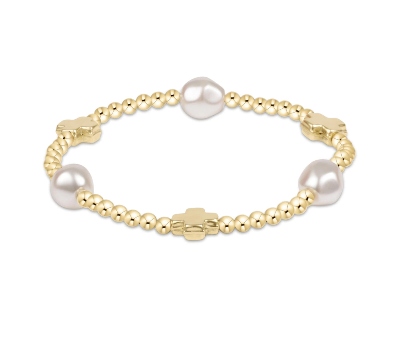Enewton Signature Cross Admire Pearl Pattern 3mm Bead Bracelet-Gold