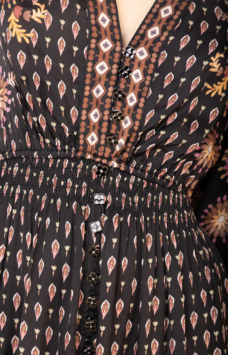 Hale Bob "Raquel" Charmeuse L/S V-Neck Dress-Black