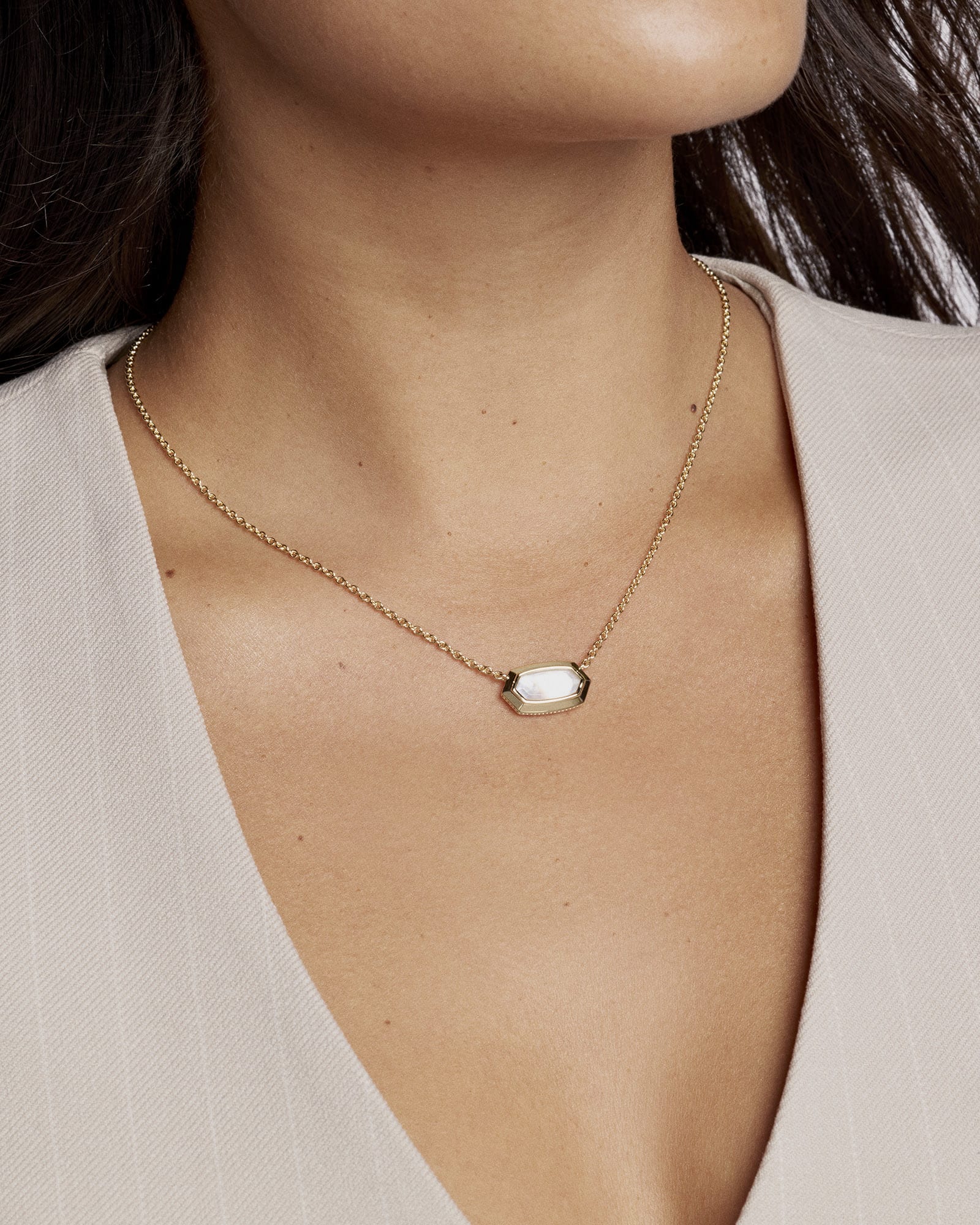 Kendra Scott Elisa Bezel Pendant Necklace-Gold Ivory MOP