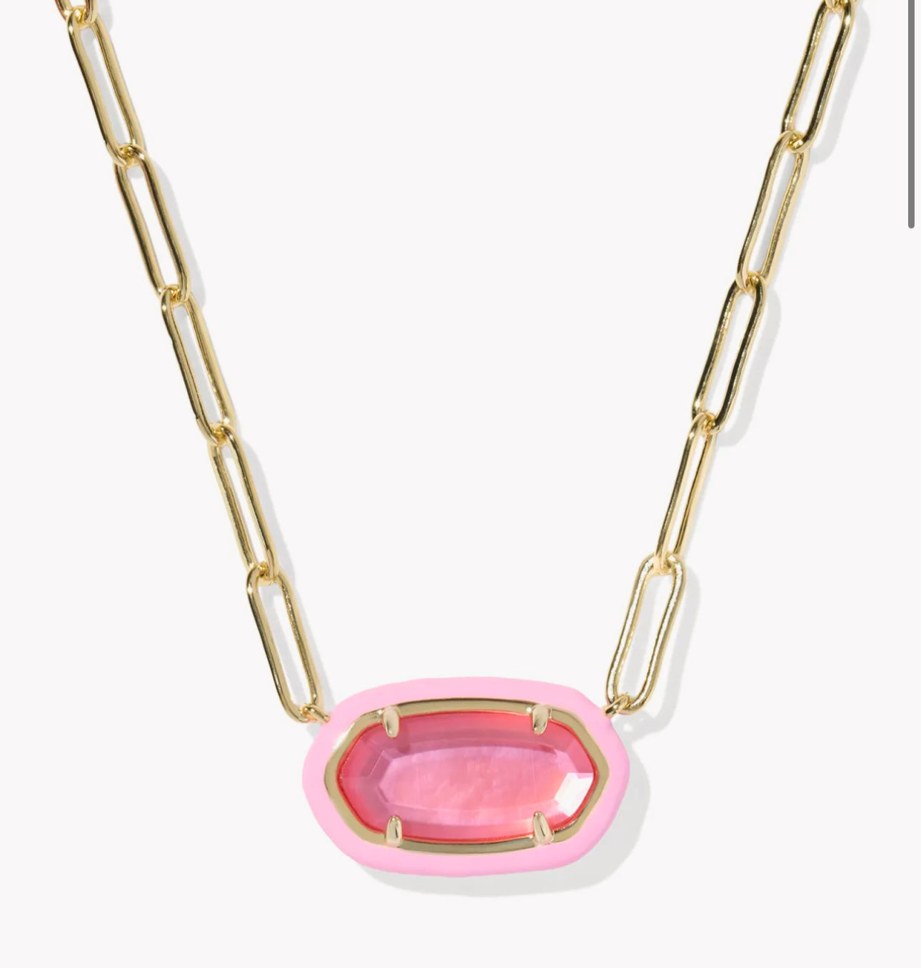 Kendra Scott Elisa Enamel Frame Paperclip Necklace-Gold/Bright Pink Illusion