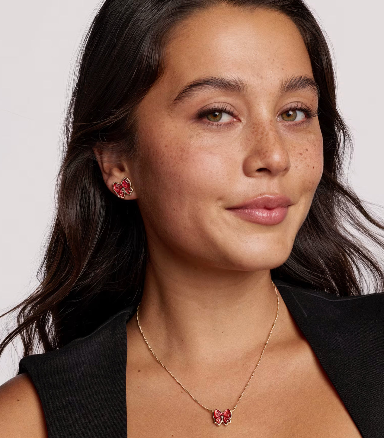 Kendra Scott Haley Bow Short Pendant Necklace-Gold Scarlet Red MOP