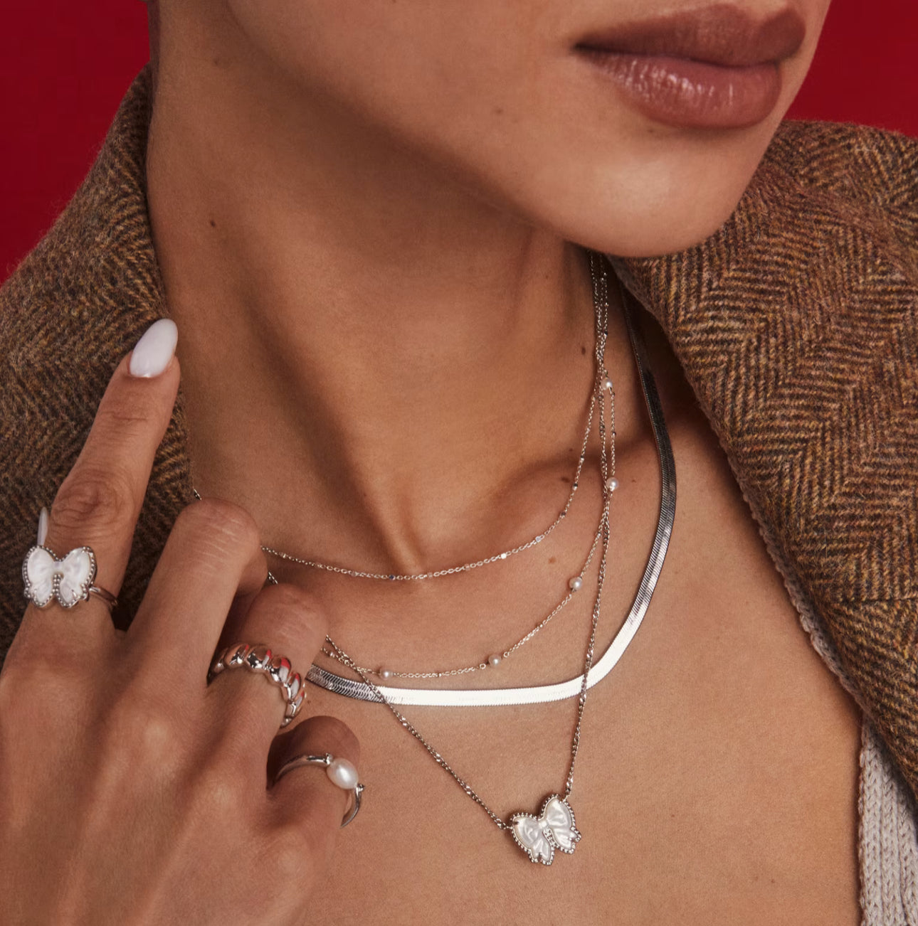 Wrap up your look with the Haley Bow Silver Short Pendant Necklace. Complete with our signature hoofprint detailing, custom-carved mother-of-pearl, and a reversible pendant for double the styling options, this necklace is a must have for any collection.