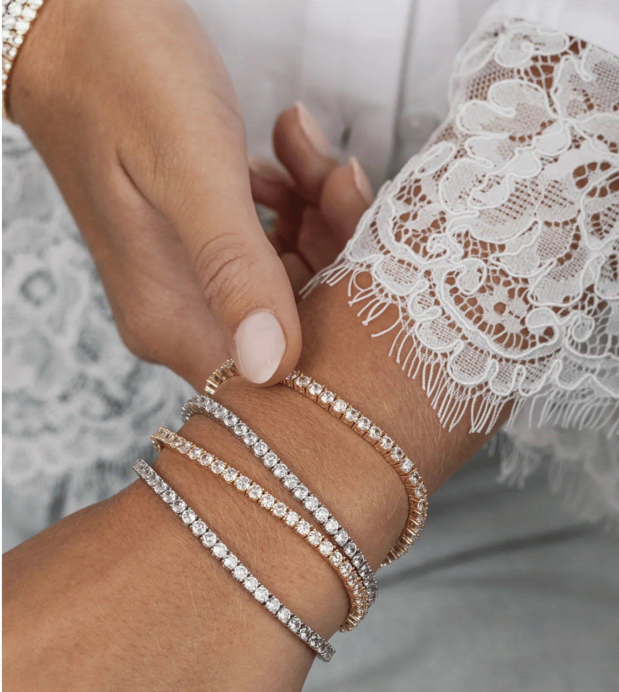 This CZ diamond tennis bracelet is bling on a budget! Wear it alone for a classic look or layer it with some of your other leMel favorites! This gives the look of a 6ctw diamond tennis bracelet.