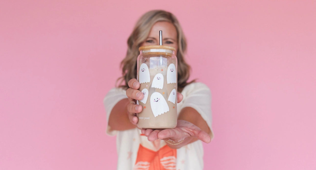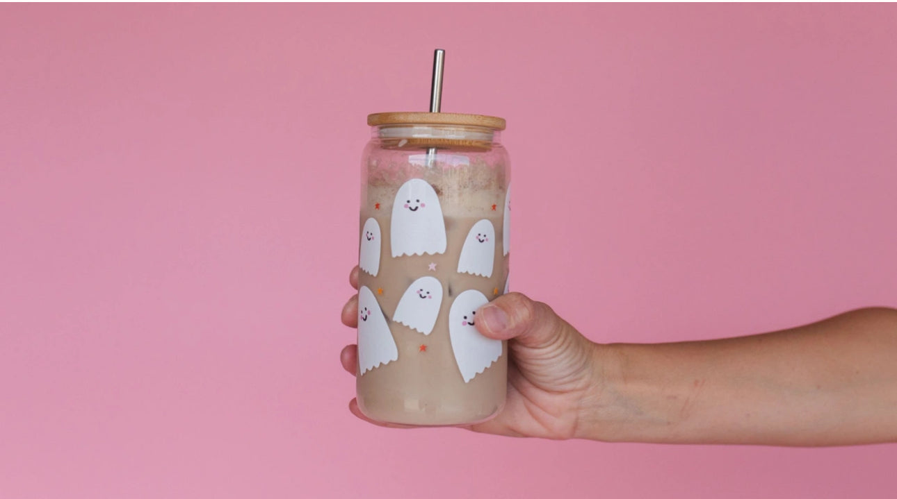 Pippi Post "Happy Ghosts" Halloween Glass Can