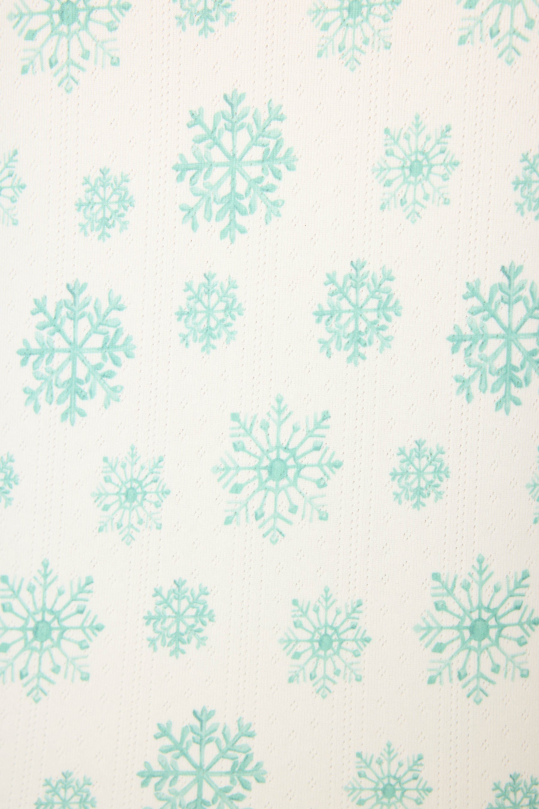 All the charm of a snow day, minus the chill. This brushed pointelle henley top is dotted with green snowflakes, finished with striped cuffs and pink button detail. Soft and festive, it’s a holiday essential for nights in and frosty mornings.