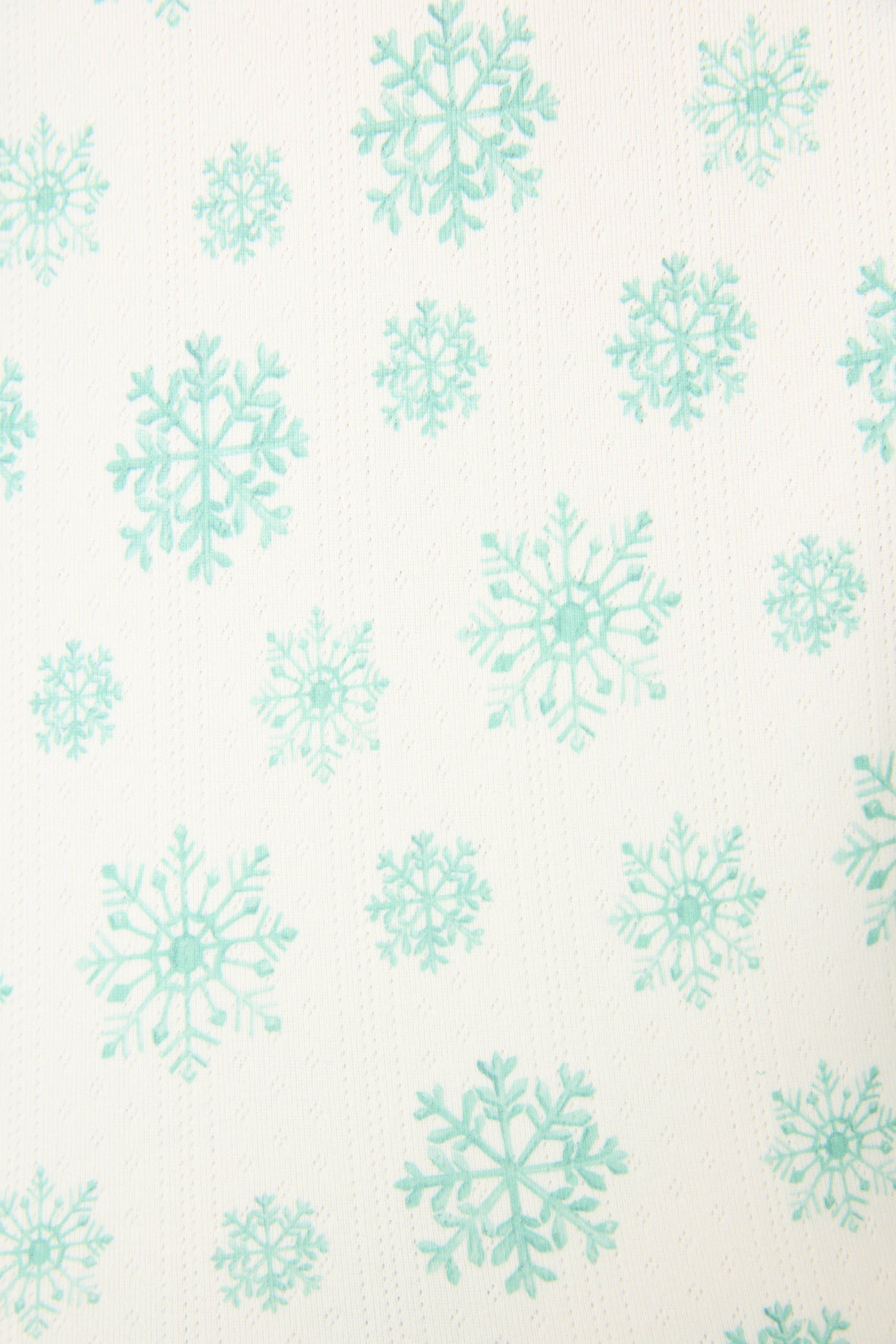All the charm of a snow day, minus the chill. These brushed pointelle pajama shorts are sprinkled with green snowflakes, finished with scalloped hems and a pink ribbon tie. Soft and festive, it’s a holiday essential for nights in and frosty mornings.