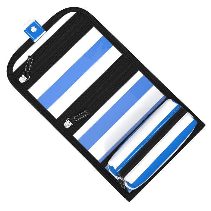 Designed for on-the-go travel and quick change days, this compact jewelry case has multiple compartments for different size jewelry (makeup welcome too!) and rolls up to about the size of an office stapler. Great for work, gym, or weekend getaways.