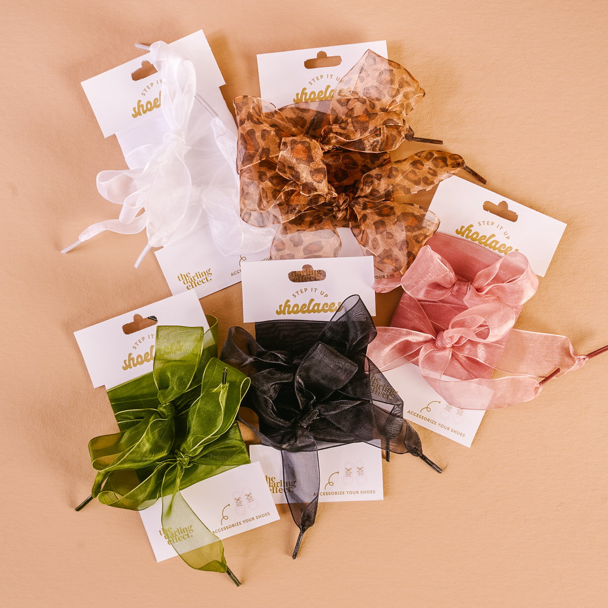 Give your shoes a playful upgrade with our Step It Up Shoelaces—available in sheer, gingham, velvet, and sheer cheetah styles. Soft yet durable, these laces are designed for all-day comfort and easy tying, with just the right flexibility for perfect bows that stay put. Whether you're adding flair to sneakers or dressing up your favorite kicks, they’re designed to fit shoes with 6 rows of lace holes (12 total) for versatile use. Choose your vibe and tie it your way.