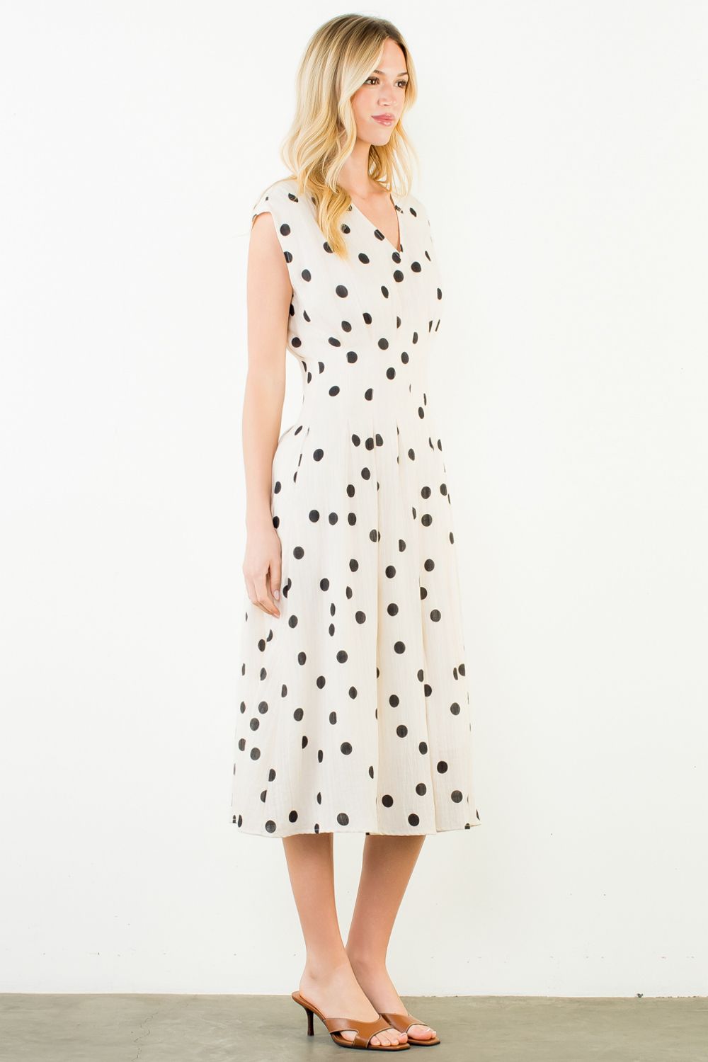 THML "Isla" S/S Polka Dot Dress-Cream/Black