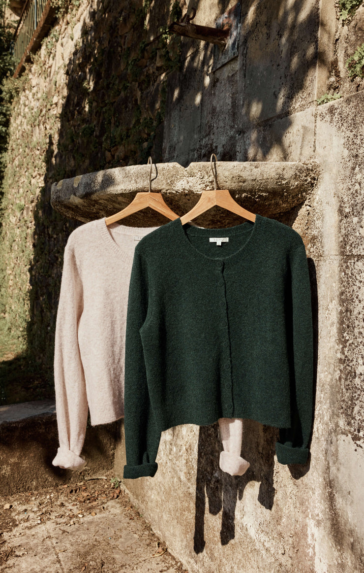This relaxed crewneck cardigan is made from cozy sweater yarns with an easy button-up front that’s perfect for layering. Whether tossed over a tank or worn solo, it’s the ideal go-to for cozy, casual days.