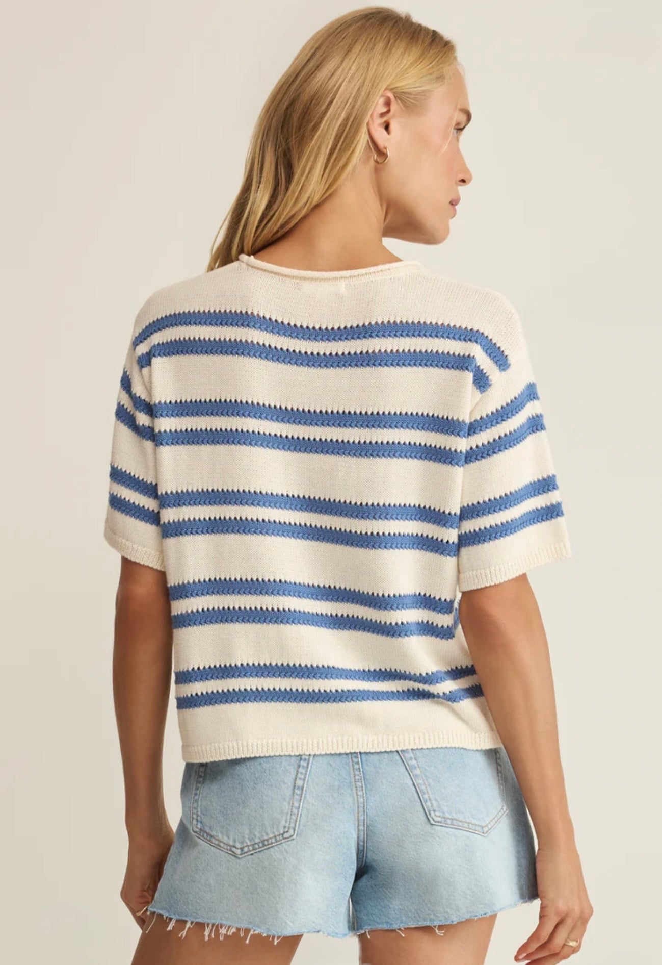 Z Supply Prado Stripe Sweater Tee-Lake Blue